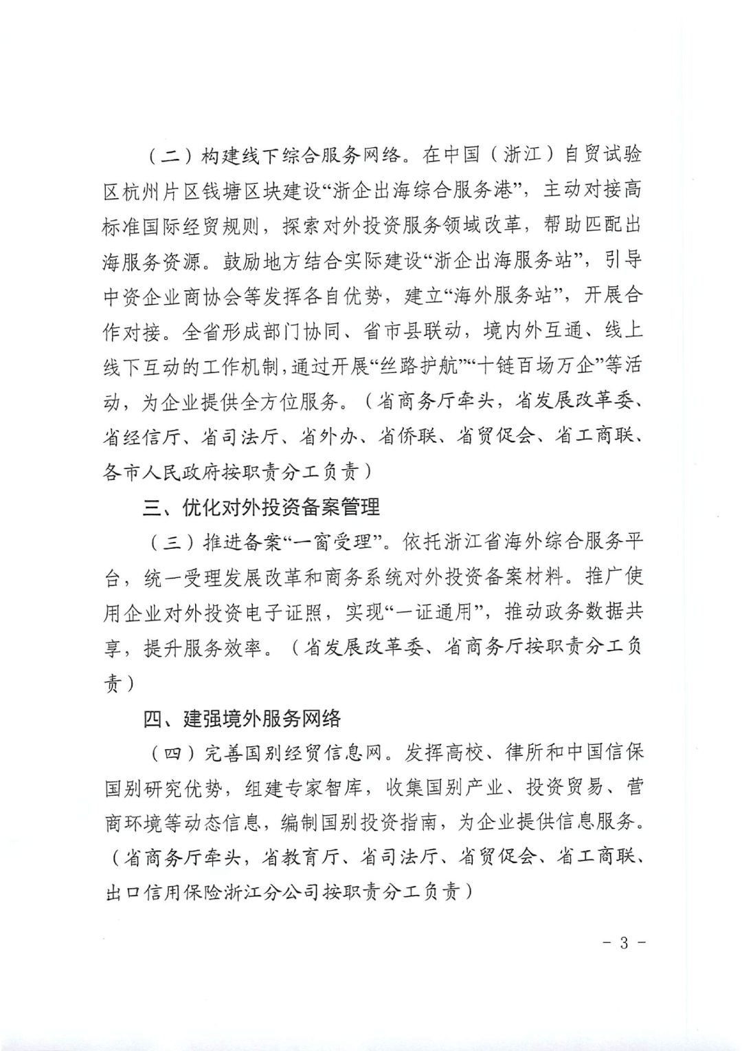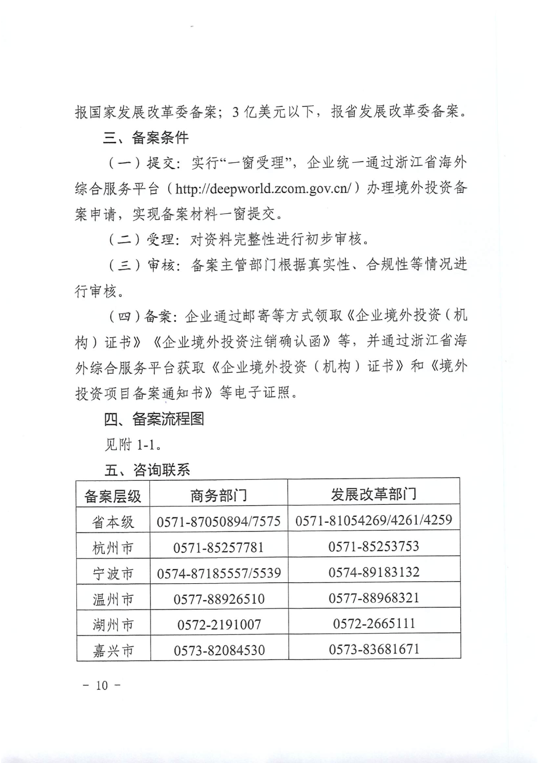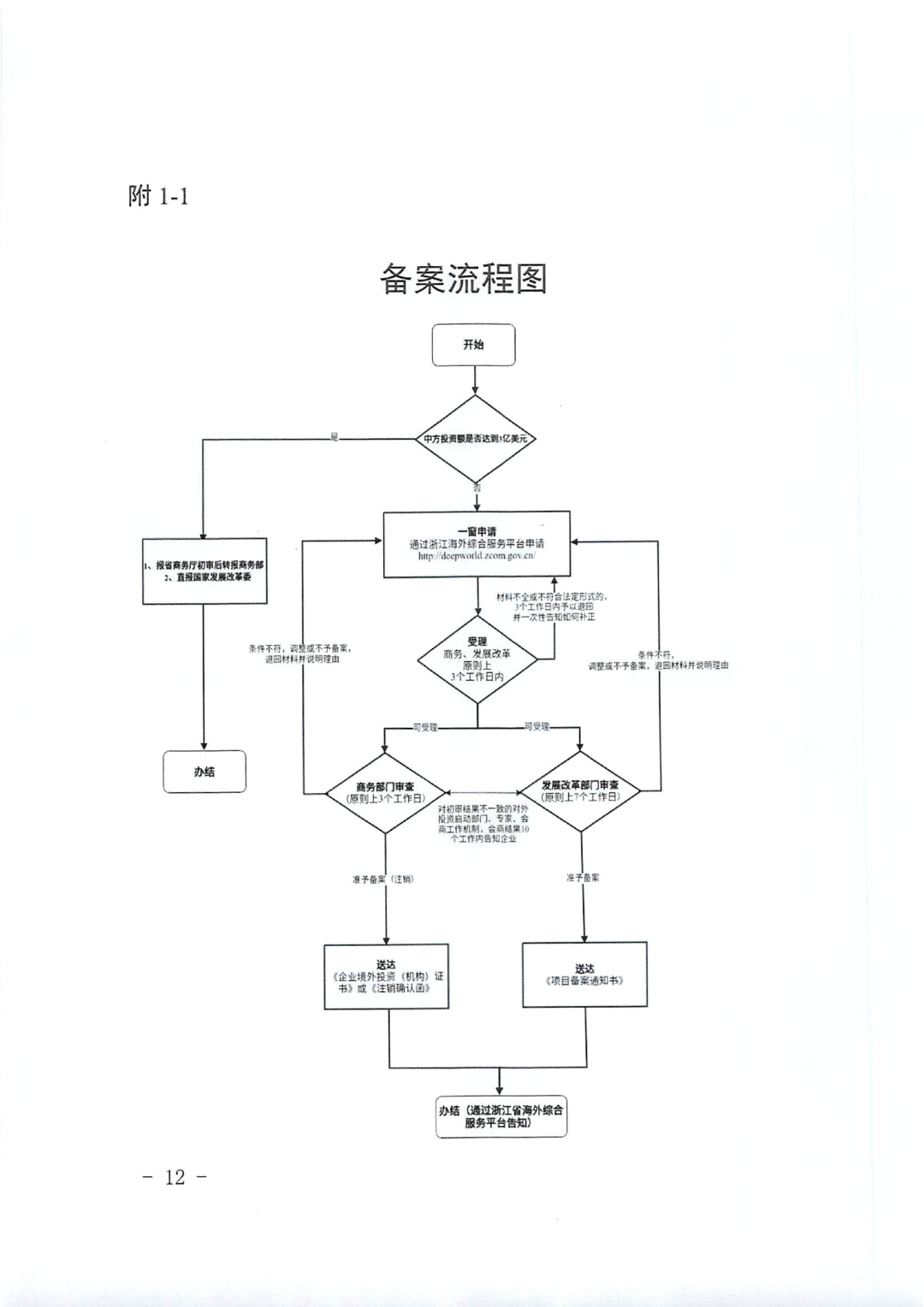 依托浙江省海外综合服务平台,统一受理发展改革和商务系统境外投资备案,提升政务服务效能。